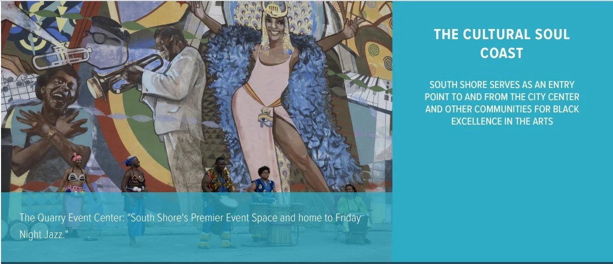 ”The Cultural Soul Coast - South Shore serves as an entry point to and from the city center and other communities for Black Excellence in the Arts.” - South Shore’s Quality of Life Plan (2022).“